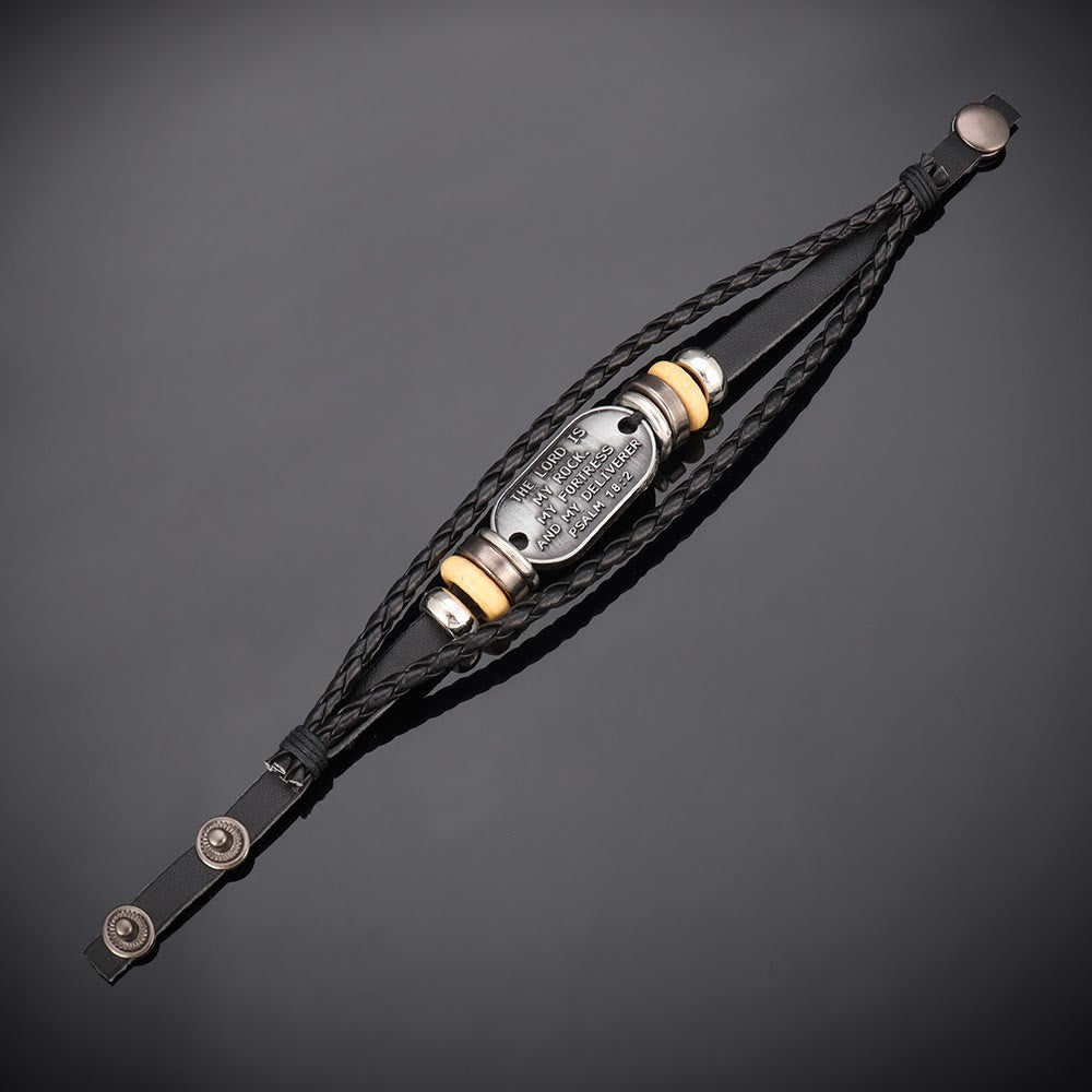 Christianartworkshop Handcrafted Braided Leather Bracelet with Psalm 18:2 Inscription - Wrist Circumference: 8.27''/21cm - image 0