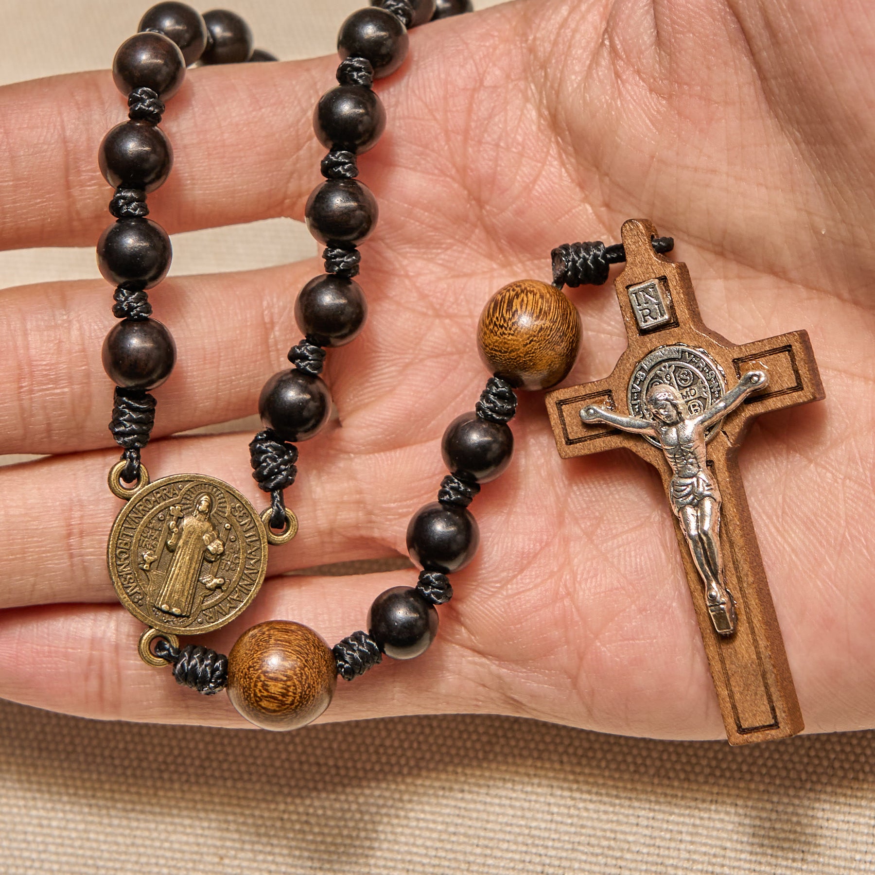 Christianartworkshop St. Benedict Medal & Crucifix of Black Wooden Round Beads Blessed Devotion Rosary - Ebony Beads - image 0