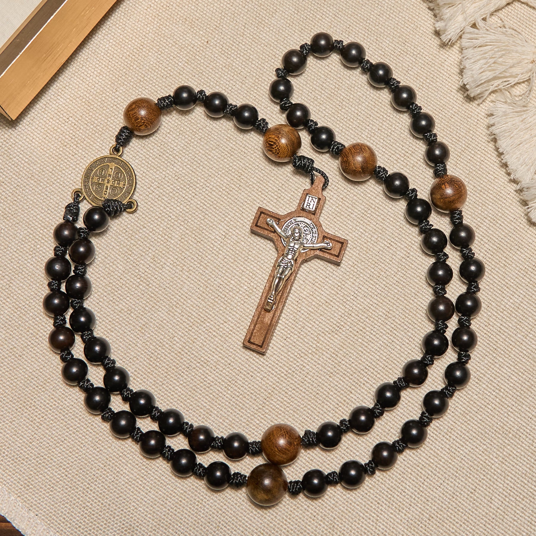 St. Benedict Medal & Crucifix of Black Wooden Round Beads Blessed Devotion Rosary