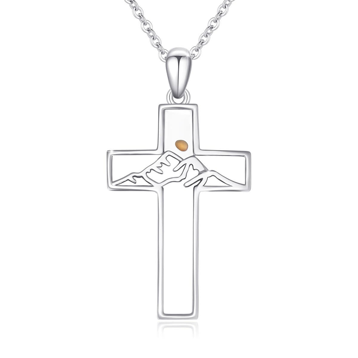 Christianartworkshop Mustard Seed Mountain Cross Necklace: Faith's Endurance & Nature's Wonder