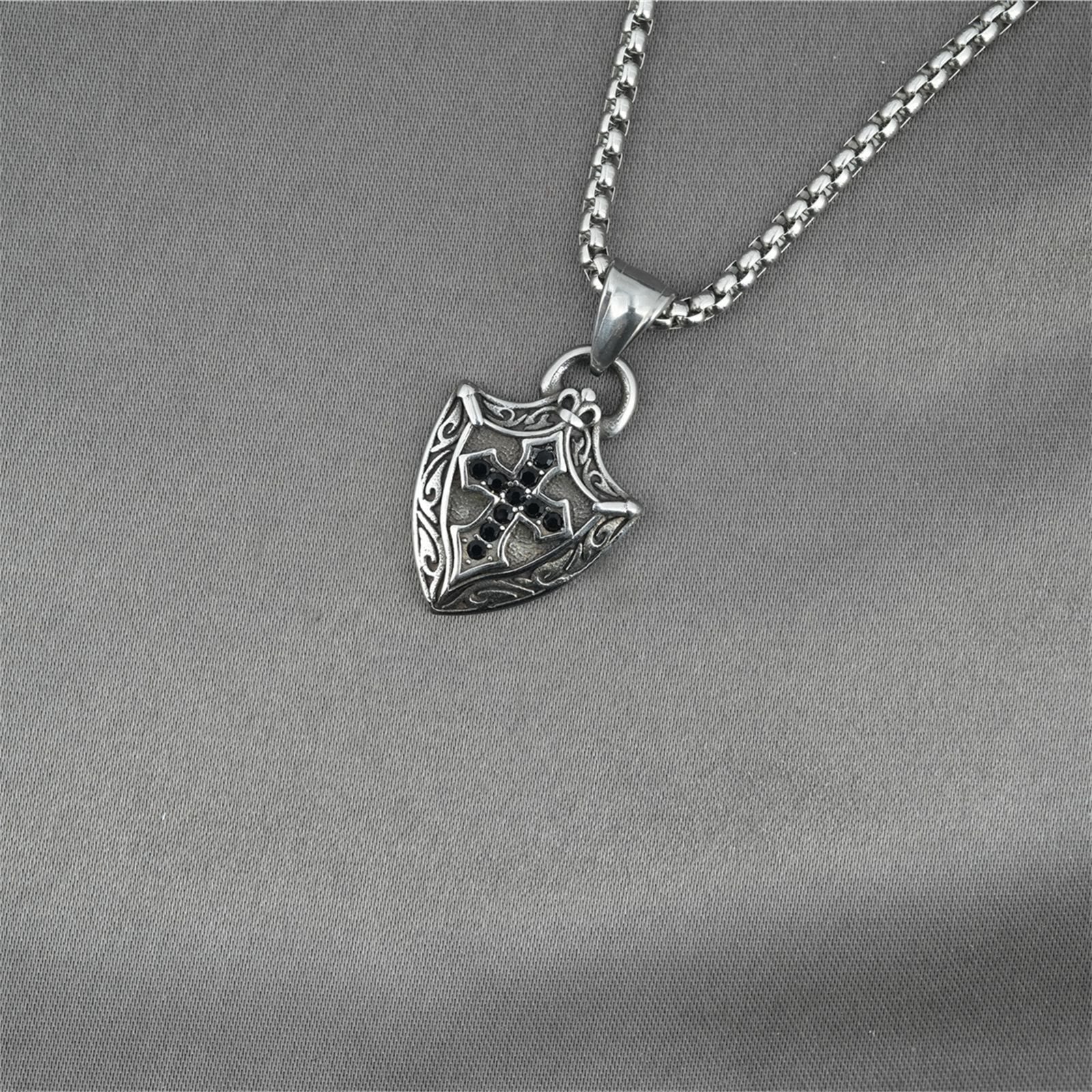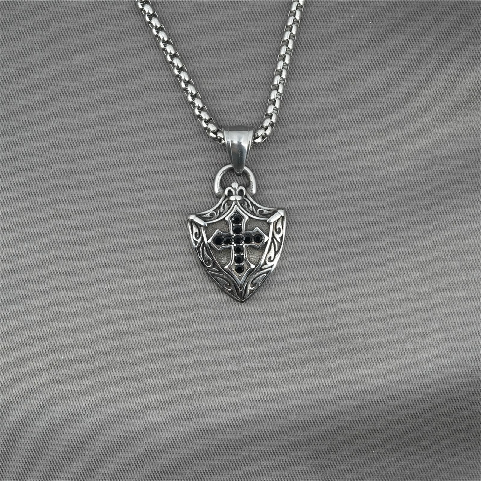 Introducing our Shield - Cross Necklace — a striking piece blending spiritual devotion with a sense of protection, ideal for those seeking a bold connection to faith. -