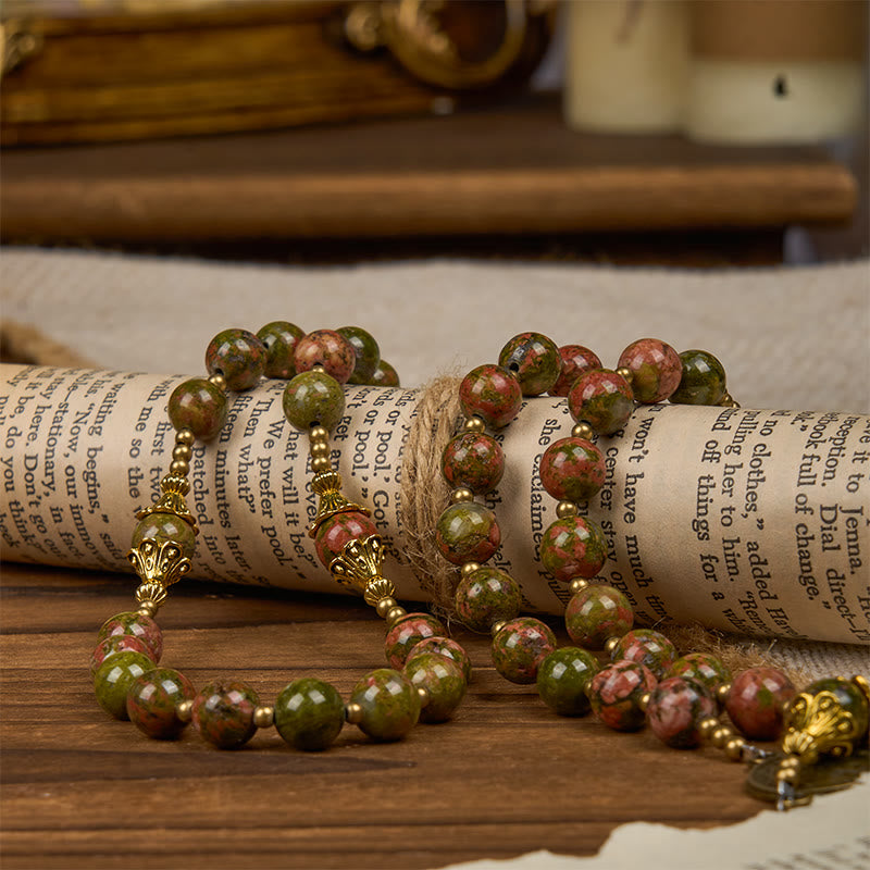 - Delight in the elegance and spiritual grace of our handcrafted rosary. Each bead is meticulously polished, blending soft shades of earthy greens and warm rose tones to enhance your prayerful experience. The rosary features intricate golden accents and a beautifully detailed crucifix, symbolizing unwavering faith and eternal hope.