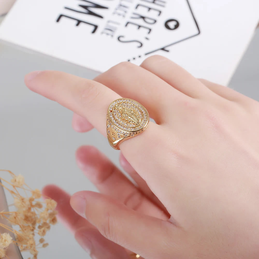 Our Lady of Guadalupe Oval Sparkle Signet Ring, Radiant Devotion