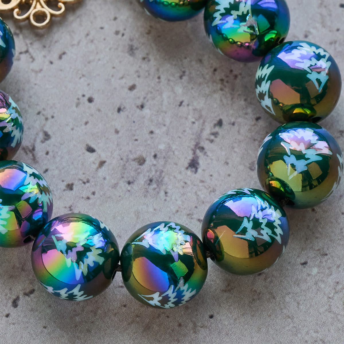 This pocket rosary gathers bold red-green holiday beads with golden accents, an Our Lady of Guadalupe center, and a vintage crucifix—made for on-the-go Christmas prayer. -
