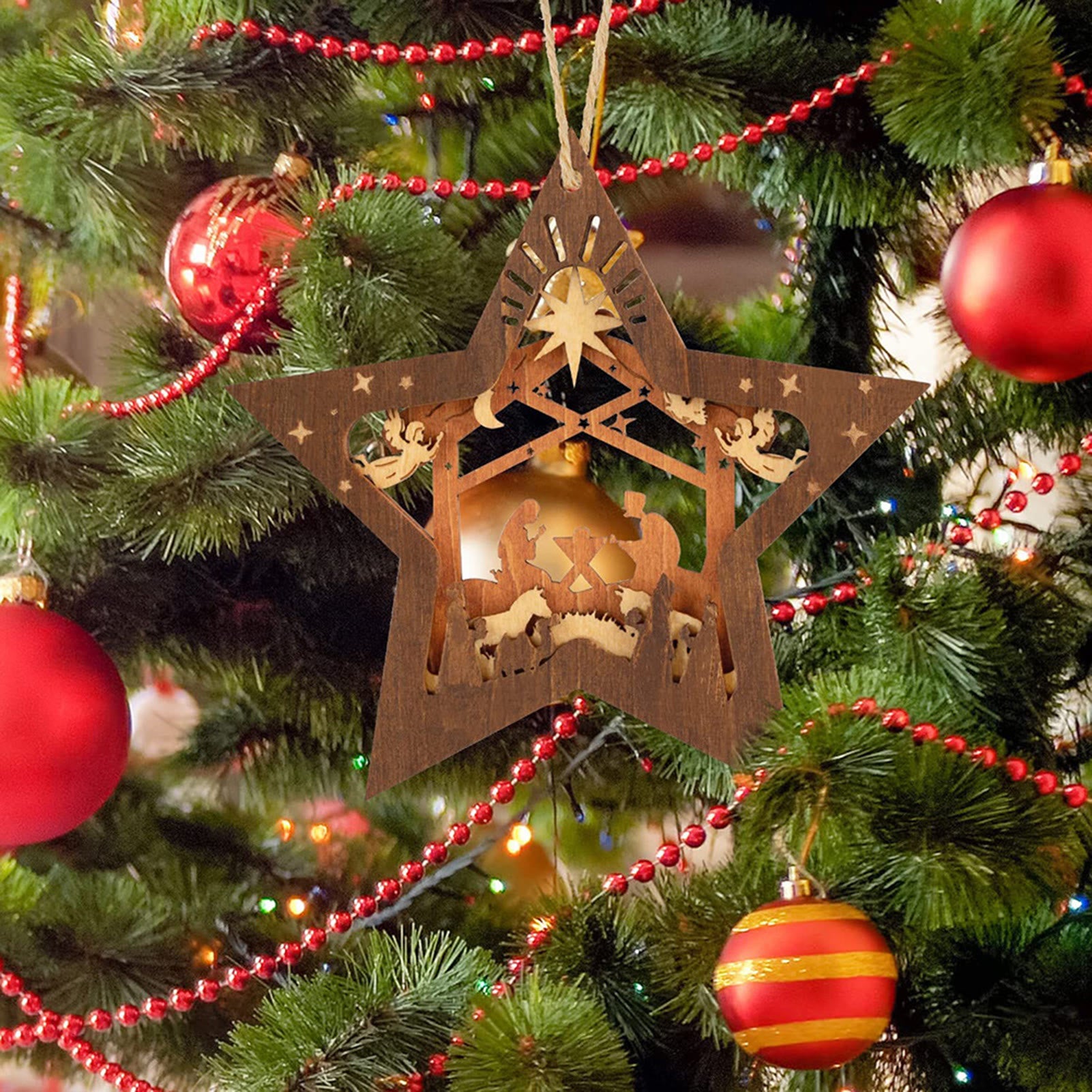 Rustic Style Layered Wooden Pendant Five-pointed Star Christmas Nativity Ornaments