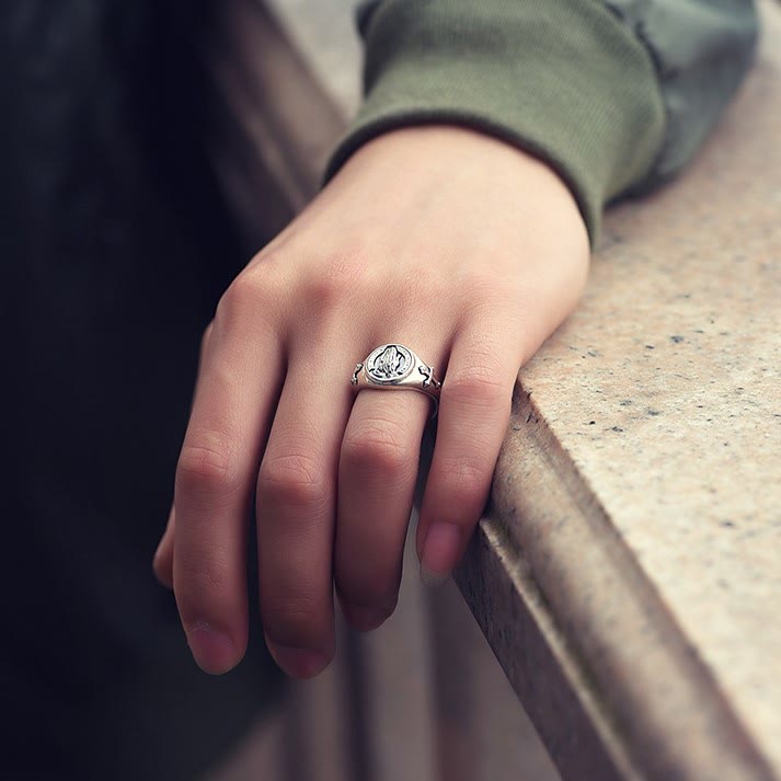 Prayerful Hands & Cross Accent Ring, Quiet Devotion