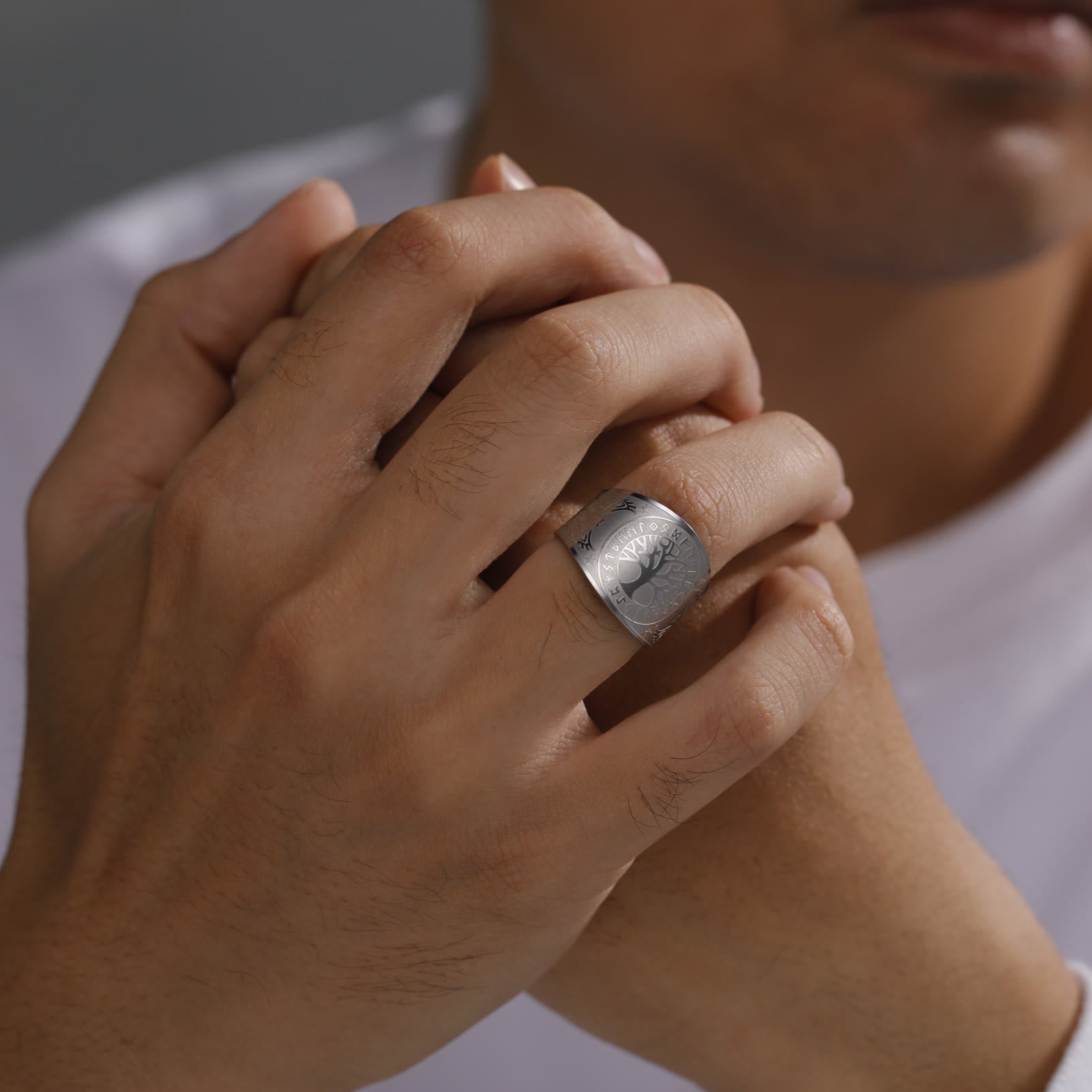 Tree of Life & Scripture Engraved Adjustable Ring, Rooted Devotion