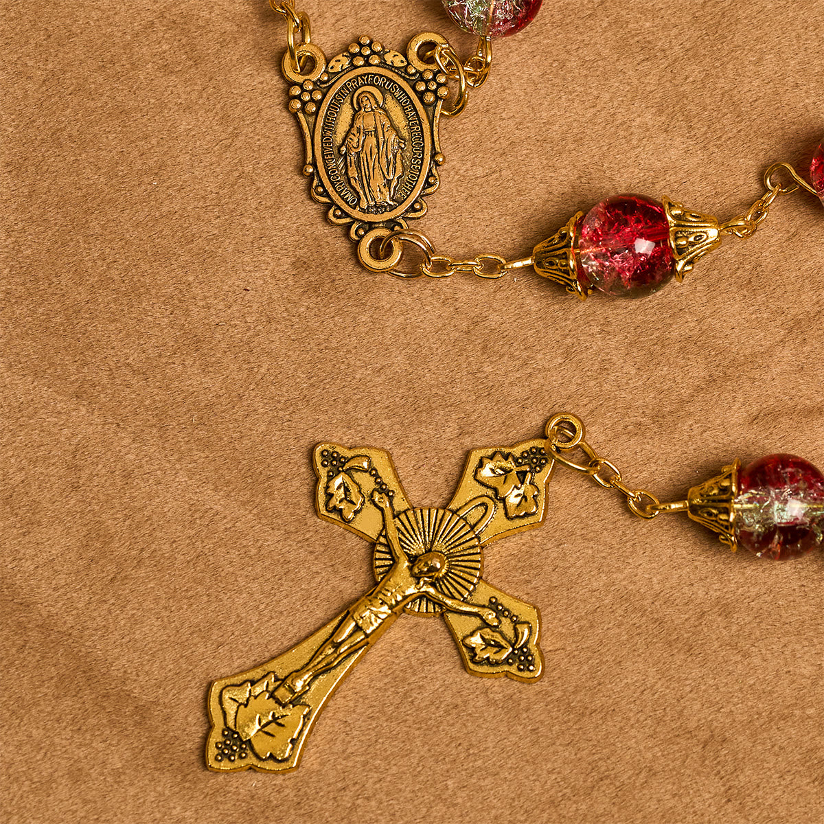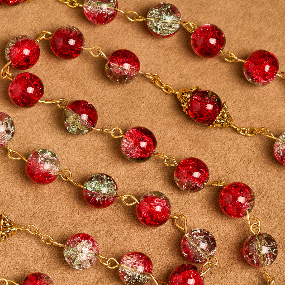This rosary merges festive Christmas inspiration with profound spiritual significance. The golden crucifix evokes Christ’s love and sacrifice, while the red - and - green beads (echoing classic Christmas hues) celebrate the joy of the holiday season, making prayer a heartfelt blend of devotion and festive charm. -