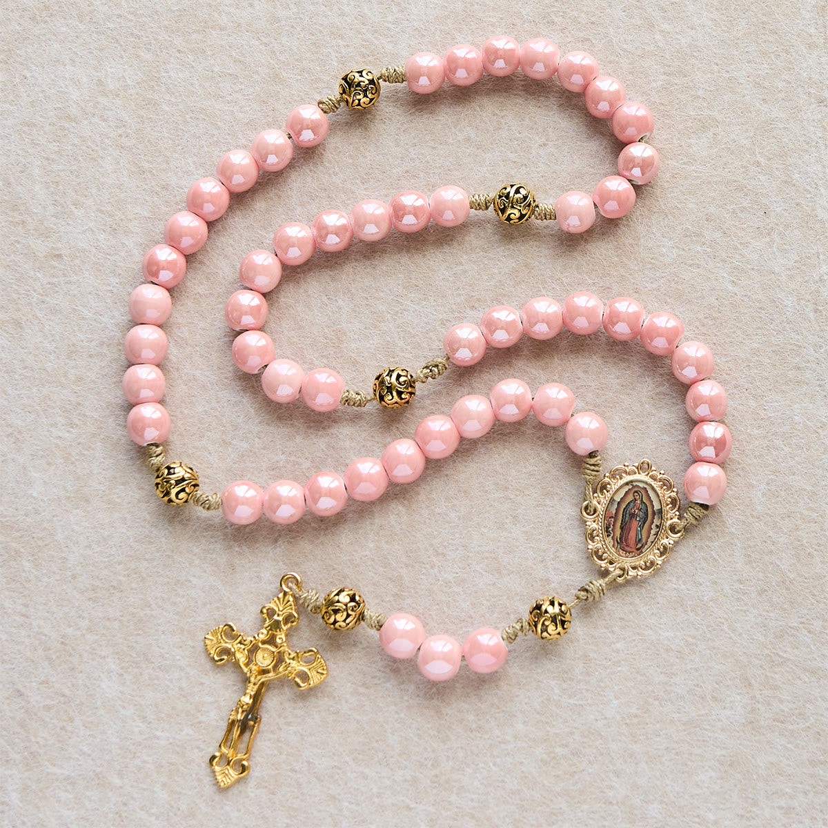 Christianartworkshop Mary's Light Pink Ceramic Rosary: Celebrate Christmas with Grace and Hope - Our Lady of Guadalupe & Crucfix - image 0