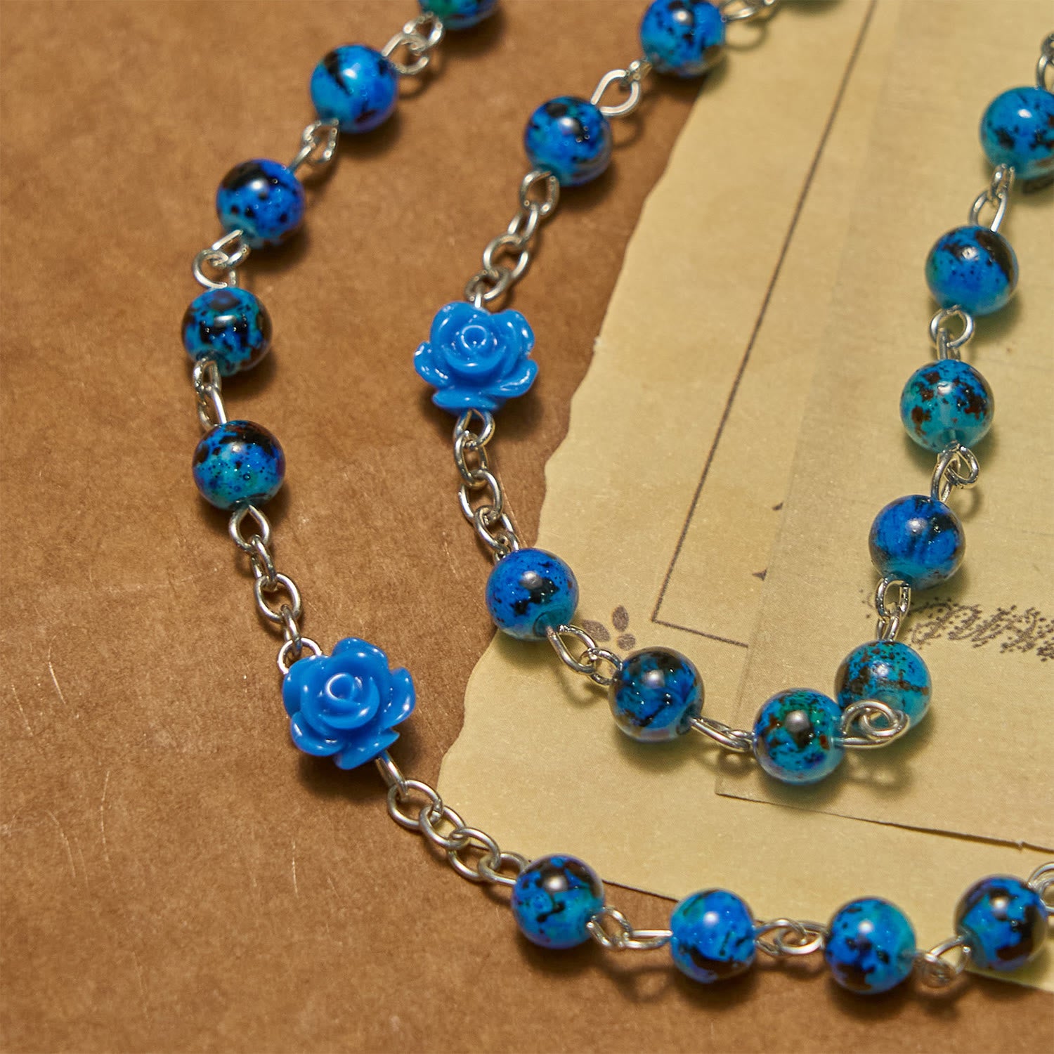 Emotionally, it offers comfort and strength. In all times, it's a reminder of God's love. Wearing it connects you to the global Christian community, sharing in the journey of faith. - This Blue Stone Rose Rosary is a symbol of your devotion to Christ, allowing you to carry your faith with grace.