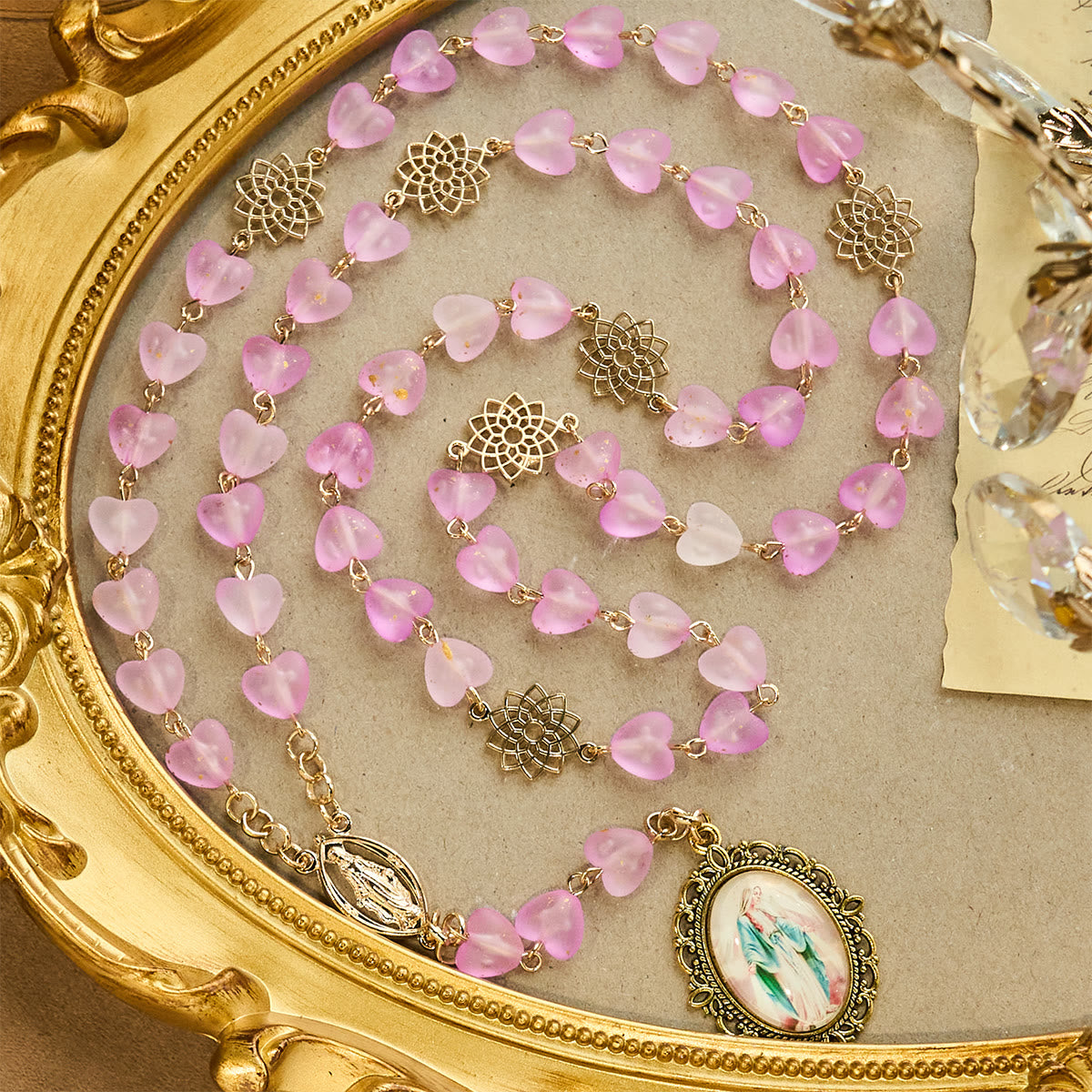 Combining timeless religious symbols with delicate heart and butterfly design, it serves as a cherished prayer tool and a meaningful gift for those who value both faith and artful devotion.